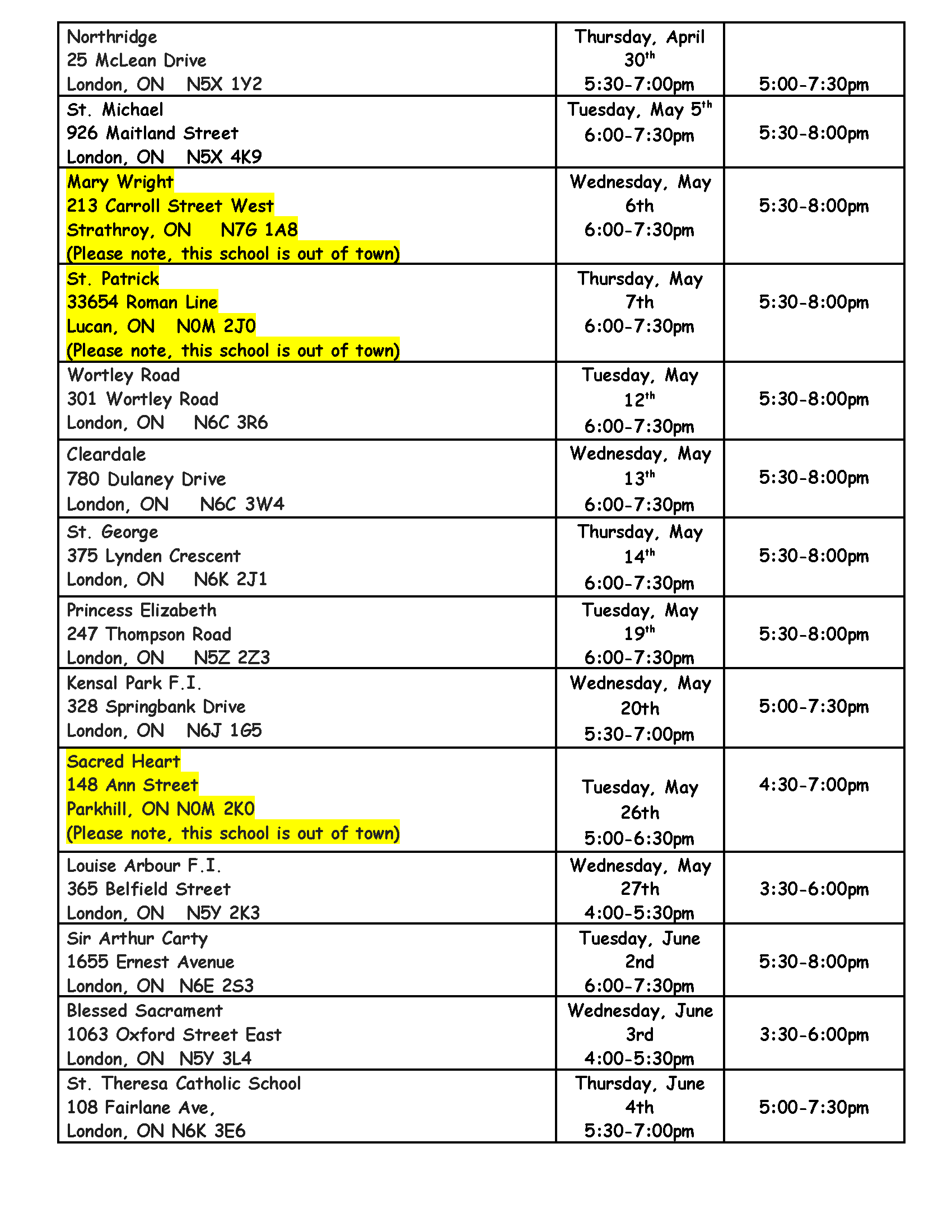 *Please note that transportation from our office (1625 Dundas St, London) may be available for locations outside of London. Mileage will only be provided to anyone who is able to drive to out of London locations.